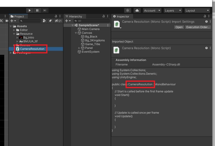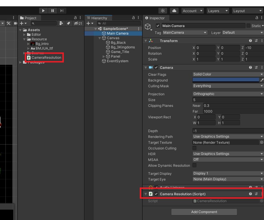 [별아재군/unity3d] 모바일 화면해상도와 캔버스 스케일, 메인 카메라 초기설정 하기.