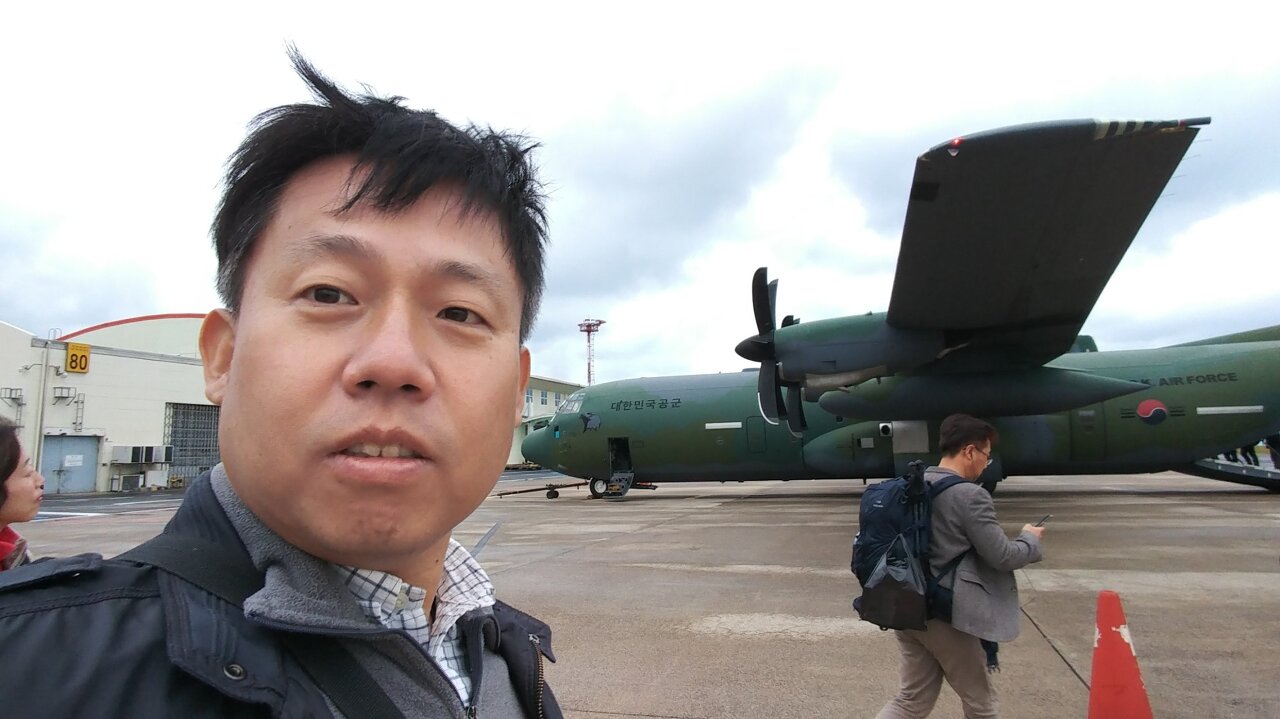첨으로 군용기 타고 하늘을 날아 제주에 도착..